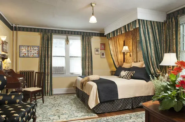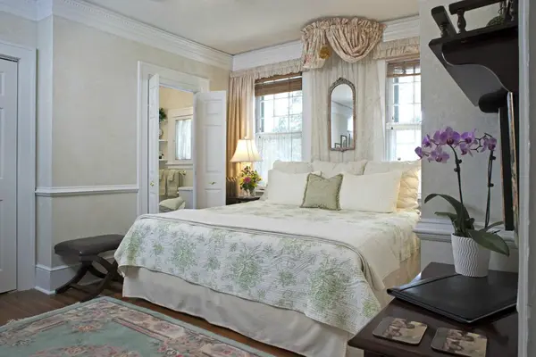 “This elegant, award-winning, Colonial Revival home is surrounded by beautiful mature trees and well-tended English gardens... Expect attentive service along with your gourmet breakfast.”
