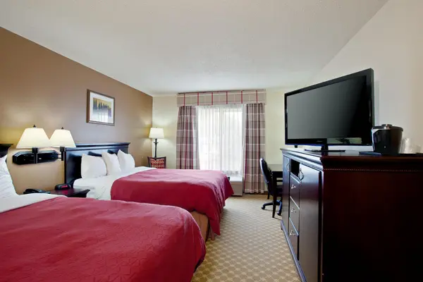“This 56-room Country Inn & Suite outpost is a mid-range hotel offering spacious rooms with microwaves and mini-fridges.”