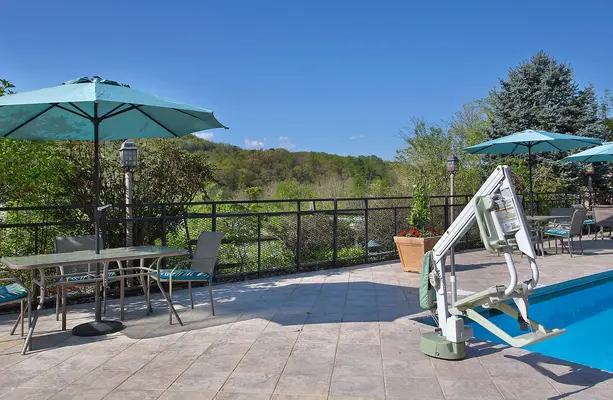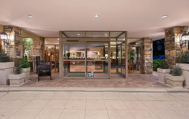 “Holiday Inn Asheville Biltmore East is an 11-minute drive away from downtown Asheville, located in a quiet, green environment surrounded by landscaped gardens and woods.”