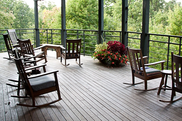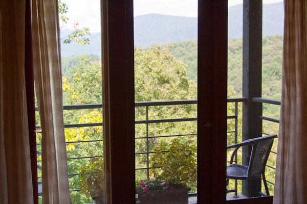 “Two miles from the Blue Ridge Parkway, down a narrow winding road, sits one of the most stunning small inns in the mountains, constructed of stone and cedar, in the Arts & Crafts style.”