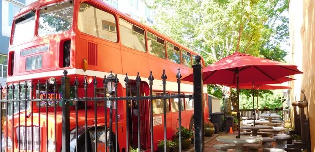 "Why chase food trucks when you can have coffee and pastries in a red 1963 Lodekka-model double-decker bus from Bristol, England, or out on the adjacent patio. " Full review