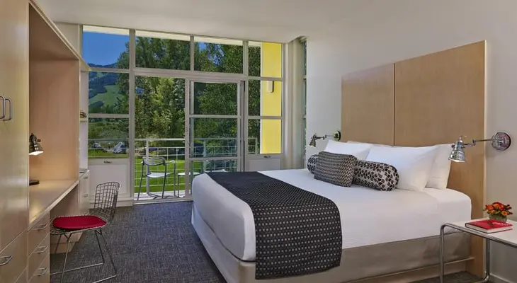 "Rocky Mountain resort with Bauhaus architecture overlooking Aspen’s Roaring Fork River." Full review