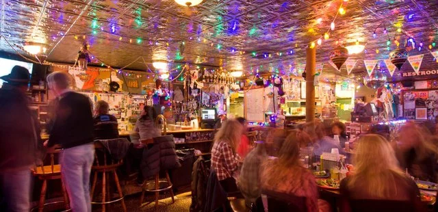 "A Wild West relic...a dive bar with funky décor, carnival lights, leopard-print upholstery, tchotchkes galore"