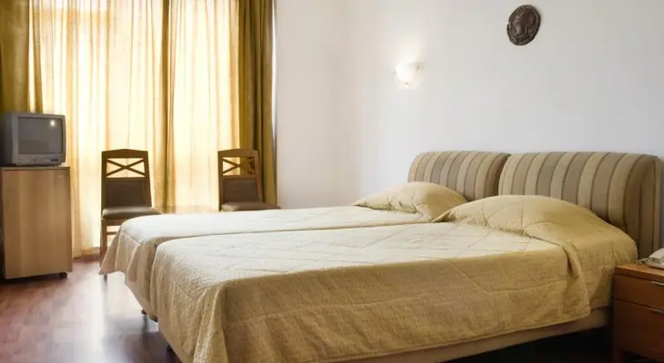 “Rooms have been slightly updated, but most are sparsely furnished and dated, with tube TVs. All rooms have free Wi-Fi. A breakfast buffet is included.”
