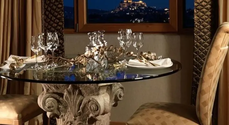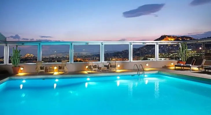 "Set close to Kolonaki, boasting a lovely marble lobby with an impressive chandelier and a rooftop pool offering breathtaking views of The Acropolis and Lykavinos Hill."