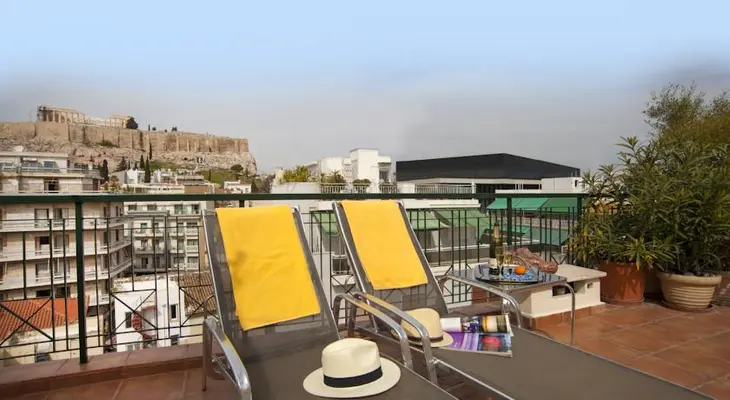 “Exceptional central location right below the Acropolis. Restaurants, bars, and public transportation surround this family-run property... Wi-Fi and breakfast are free.”
