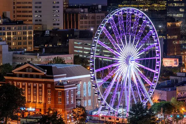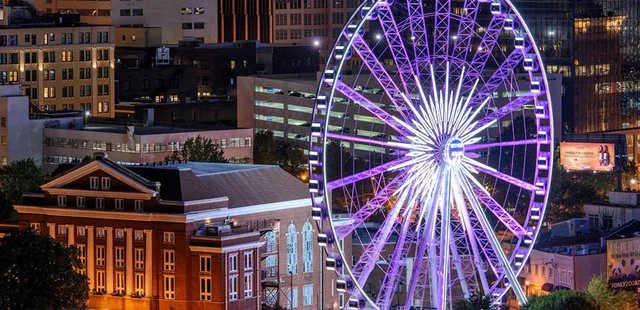 “Soar 200-feet above the Atlanta skyline in this 20-story, 42-gondola ferris wheel installed in 2013.”