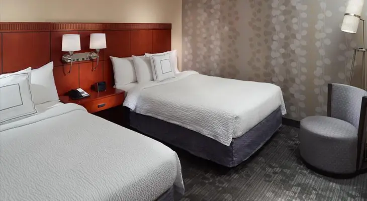 “Rooms here are nicely appointed with cherry furnishings, including a dining table and workspace.”
