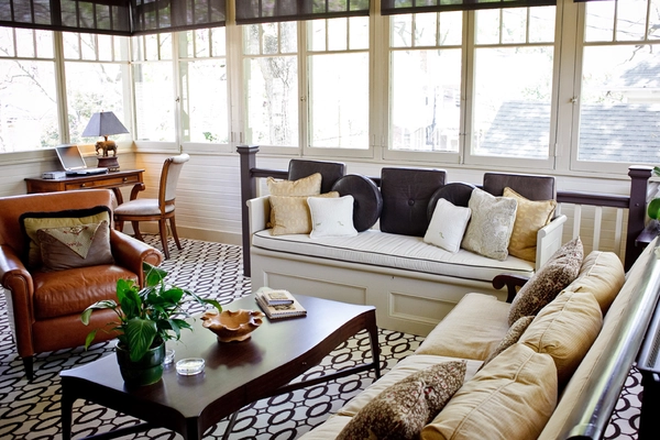 "A lounge chair and ottoman by Charles and Ray Eames stylishly abide in a setting that has preserved original details right down to the hardware."