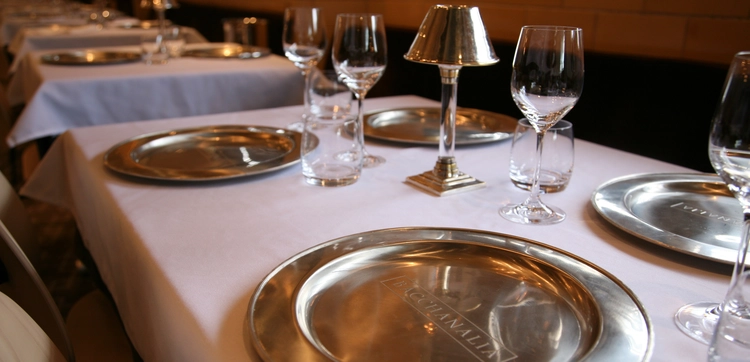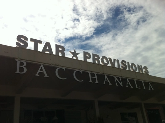 “Bacchanalia's edgy and sophisticated space in a meatpacking plant on the outskirts of an industrial area takes first-time diners aback, but just for a second.”