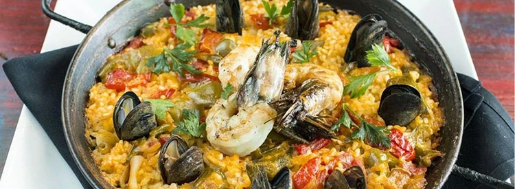 “Although a few dishes come from Spain, such as the paella, most reflect South American traditions. Mexico is represented by a series of tacos.”