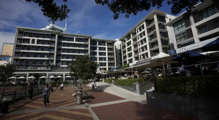 “In one of Auckland's liveliest locations, just north of Princes Wharf, abutting the waterfront promenade's shops, bars and restaurants, this condominium-hotel is a pared-down version of the Quay West.”