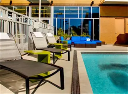 "Modern chic furniture in whimsical earth tones set the ambient stage for ultra hip lounging at aloft."