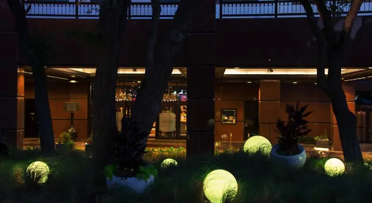 "The enormous, skylit lobby of this hotel—connected to the upscale Arboretum shopping center—is an eccentric mix of Victorian-style street lamps, crystal chandeliers, and giant mobiles." Full review