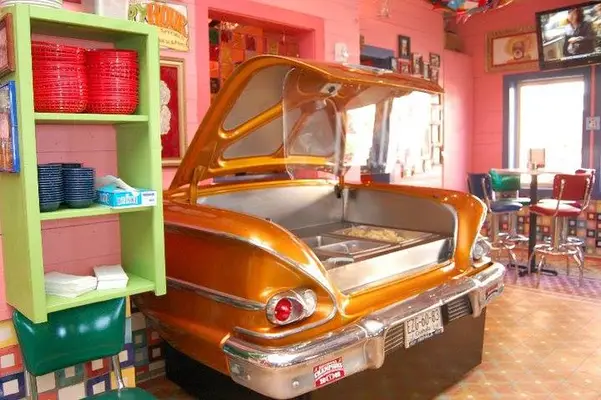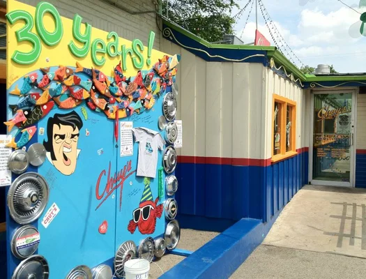 “In the row of low-priced, friendly restaurants that line Barton Springs Road just east of Zilker Park, Chuy's stands out for its determinedly wacky decor... and its sauce-smothered Tex-Mex food.”