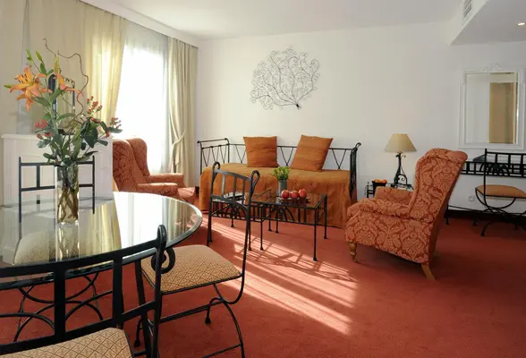 “The 122-room Avignon Grand Hotel is an upper-middle-range property with breezy Provencal decor well-located near the train station, directly outside the city walls.”