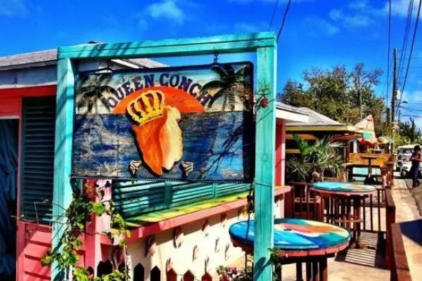"Queen Conch, a no-frills restaurant on a scenic bayside pier, serves freshly caught seafood including a tangy salad bolstered by delicious chunks of the local mollusk"