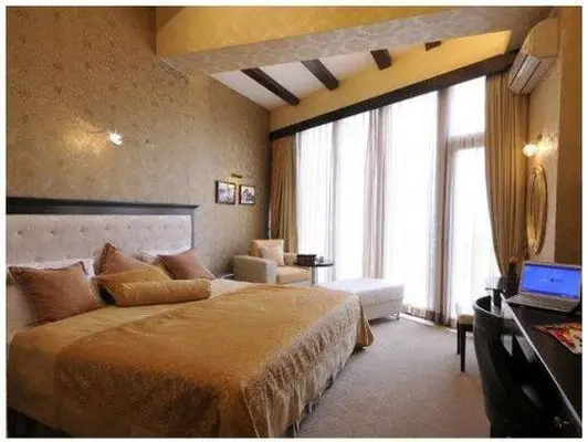 “Two-dozen floral rooms with interesting shapes and plenty of decorative arches crown a site whose wide-ranging restaurant forms several layered terraces overlooking Baku Bay.”