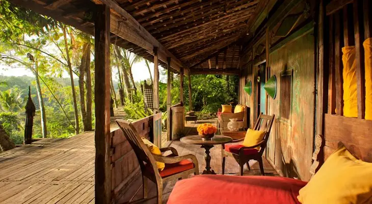 "The four hand-carved wooden houses transported from Java, each more than 100 years old, are set amid rice fields on the Sayan Ridge, an ethereal Eden near Ubud." Full review
