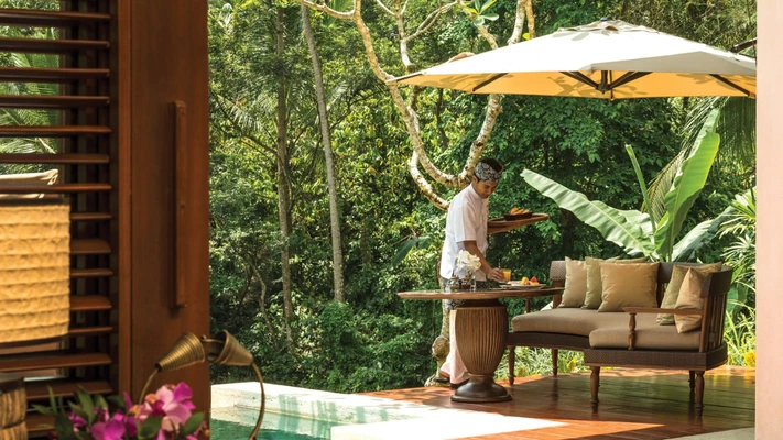 "Dine on contemporary Indonesian cuisine at the Ayung Terrace, or sip a passion fruit martini overlooking the valley at Jati Bar. "Staying here is a once-in-a-lifetime experience."" Full review