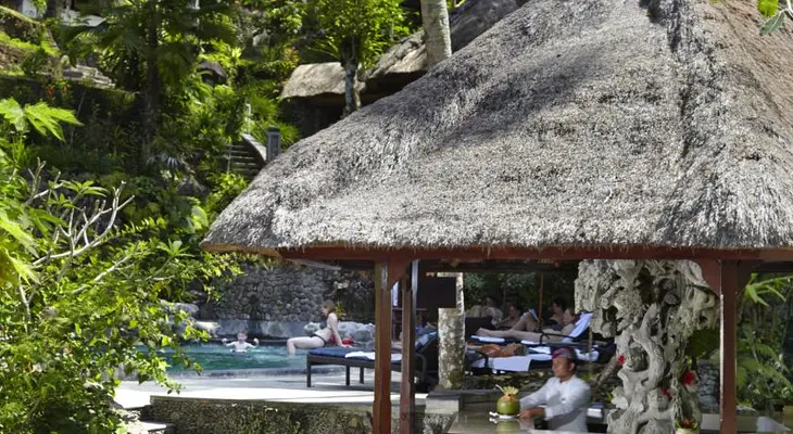 "An upscale, quiet, historic property with... a location near the Ubud sights. The property offers two outdoor pools, a spa with a grotto, and on-site dining and cocktails." Full review