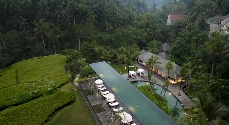 “The sweet-natured staff seem accustomed to seeing guests’ jaws drop upon arrival at this contemporary resort a five-minute drive from central Ubud.”