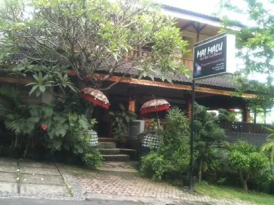 “Near the highway on the Medewi side road, Mai Malu is a popular (and almost the only) hang-out, serving crowd-pleasing pizza, burgers and Indonesian meals in its modern, breezy upstairs eating area.”