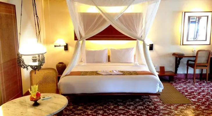 “Opened in 1967, the three-and-a-half-pearl Tandjung Sari is one of Bali's first boutique hotels, but its 28 traditional bungalows are pleasantly modern.”
