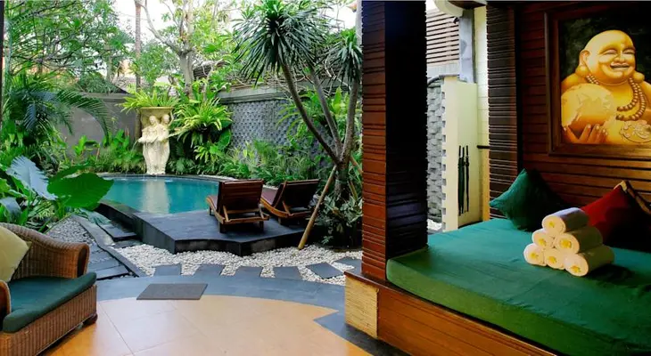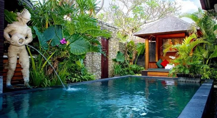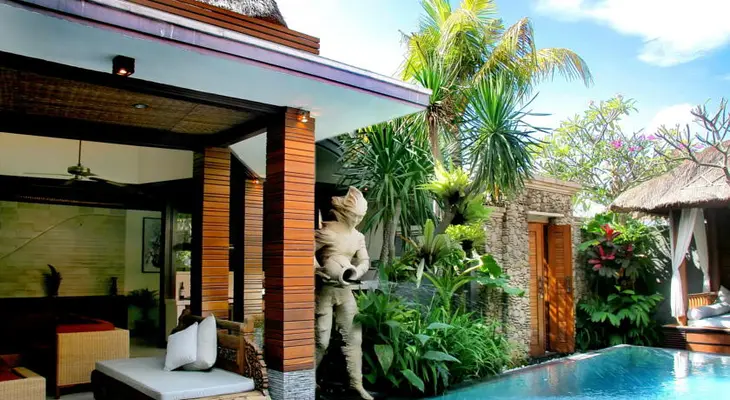 “The 30 modern -- yet authentic -- Balinese Villas have private pools, kitchenettes, open-air living spaces, and lovely stone bathrooms.”