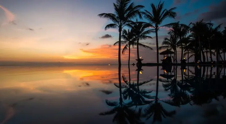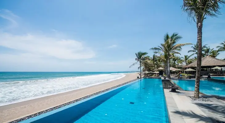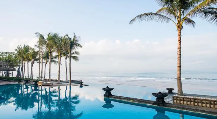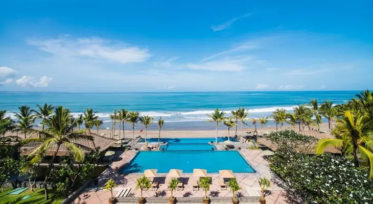 “The undisputed glamour-puss of Bali hotels, the all-suite Legian sits center stage on fabulous Legian Beach, just a quick skip from the swish shops and nightclubs of Seminyak.”