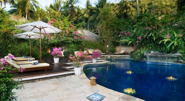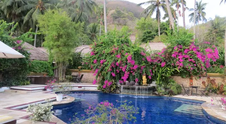 “The Watergarden lives up to its name with a swimming pool and fish-filled ponds that wind around the buildings. The gardens are lush and worth exploring.”
