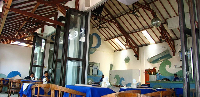 “Sunset is prime time; the best views are from the tables on the 2nd-floor terrace. Dishes include the nasi family and the burger bunch.”