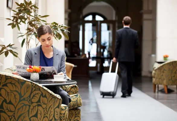 “In a heritage building that was originally a bank, the Ansonia exudes calm with its minimalist design, polished floors, dark-wood furnishings and light-filled atrium.”