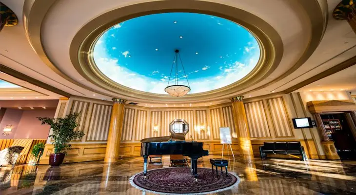 Rooms are welcoming, with rich, warm furnishings, and there are extras such as a glass-dome swimming pool and whirlpool baths. — Fodor's