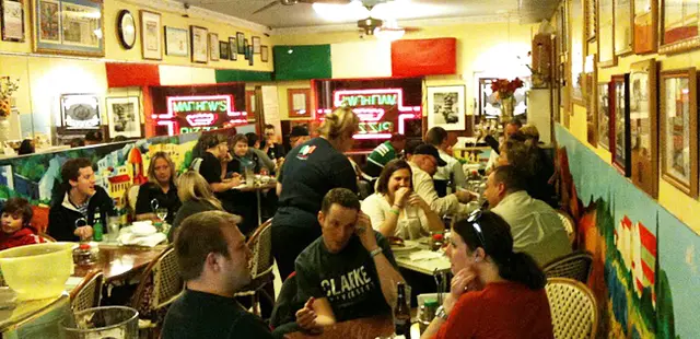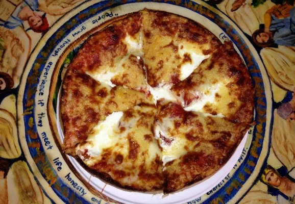“At this little hole in the wall, they know how to make a perfect pizza: soft chewy crust, tomatoey sauce, and the right amount of gooey cheese.”