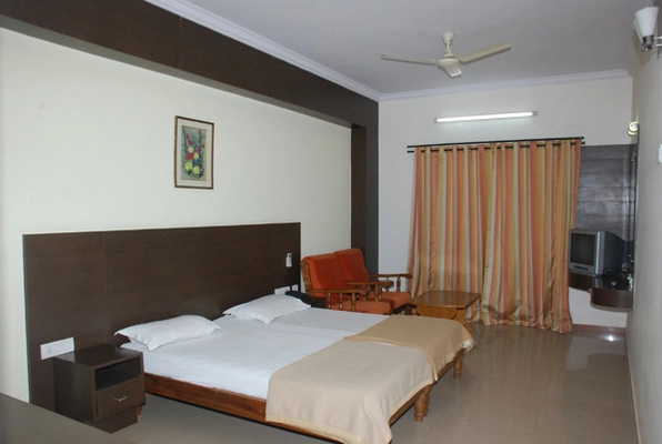 "Above a quality south Indian veg restaurant, this is a top budget place and a popular backpacker choice. Though bland, the rooms are clean and sizeable, and some have a/c. ₹750."