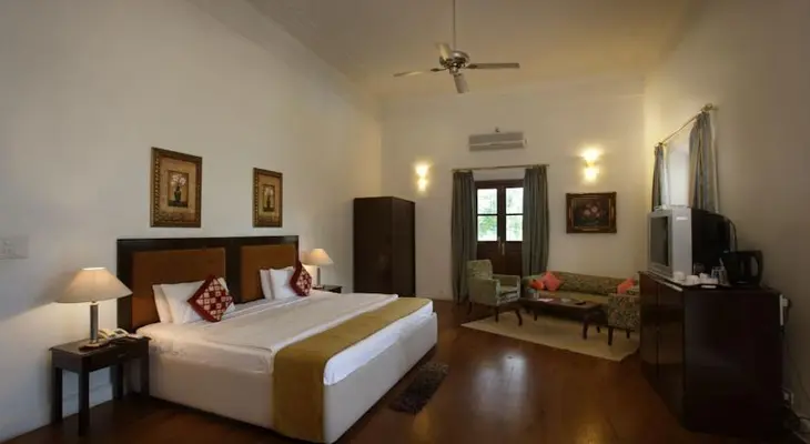 Which room to book: The Royal Suite has wonderful stained glass windows; the Gujarat Suite includes a wooden swing (doubles, $112–$212).