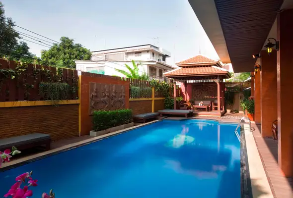 "This attractively turned-out mid-range guest house offers smart, modish air-con rooms, all with balconies and plenty of polished teakwood fittings."