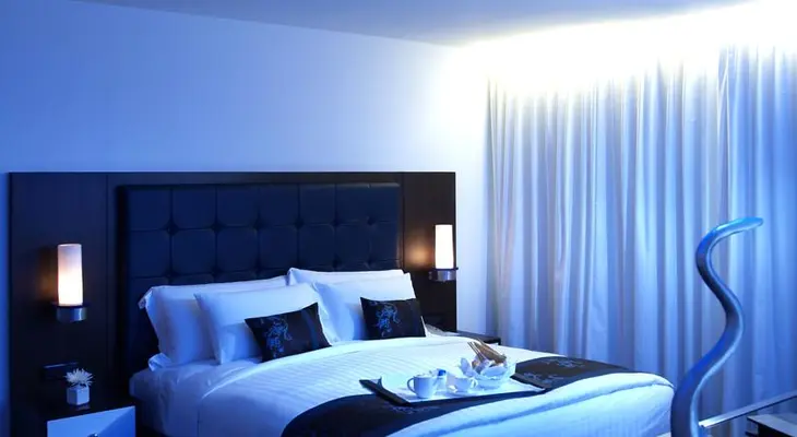 “With its signature blue-lit rooms and sceney rooftop pool, the Dream Bangkok is part of the grown-up, hip Dream chain.”