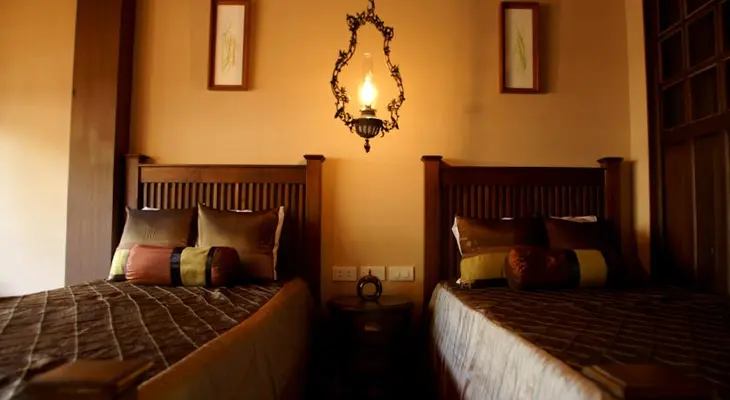 "This chic little boutique guest house has just ten air-con rooms, each individually styled in dark wood, with antique north-Thai partitions, Burmese doors, beds and ironwork lamps."