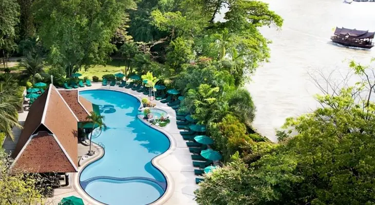 “Colossal riverfront hotel located in the commercial district, a short boat ride from the Grand Palace and adjacent to the city's largest antiques shopping mall.”