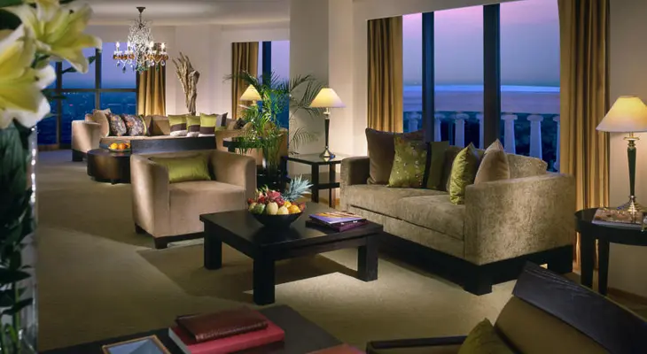 “Occupying part of the landmark State Tower on the corner of Thanon Charoen Krung, Lebua offers extravagant suites with kitchen areas, decorated in a restrained contemporary style.”