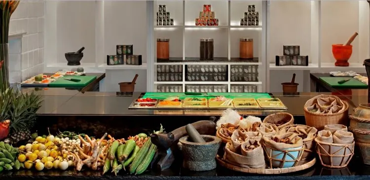 “Mouthwateringly fine traditional Thai food with a modern twist is the order of the day at this trendy, relatively informal though high-priced restaurant in the deluxe five-star Sheraton.”