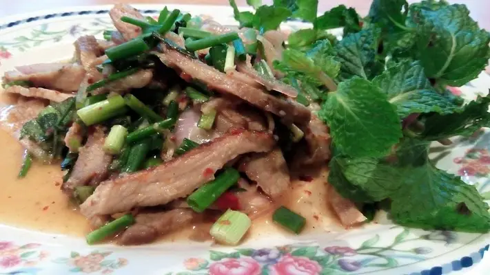 "Finger-licking chicken, shredded papaya salad (available extra spicy upon request), and bamboo baskets of sticky rice." Full review