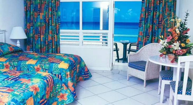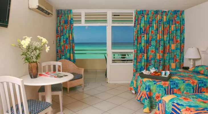 “Set at the northernmost end of Worthing Beach on the southwest coast of Barbados, the Coral Mist Beach Hotel's 32 rooms all deliver dead-on views of the Caribbean from balconies and terraces.”