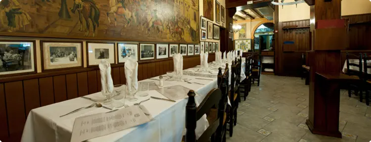 "Adorned with paintings and photos of famous visitors, it mercifully remains authentically Catalan, serving the likes of wild boar stew and spinach canelones."