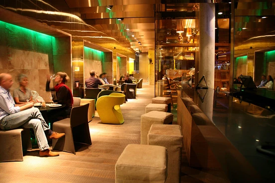 "Computer screens light up with the 3,500-label wine list at Monvínic, a wine bar and restaurant featuring communcal tables and an unfinished oak–and–stainless steel interior." Full review