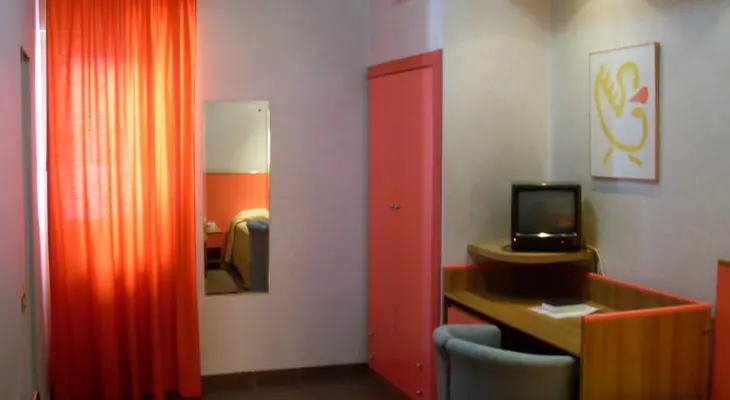 “Simple but attractive rooms in an apartment building one block from the station.”