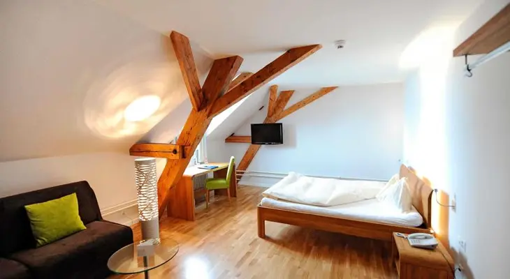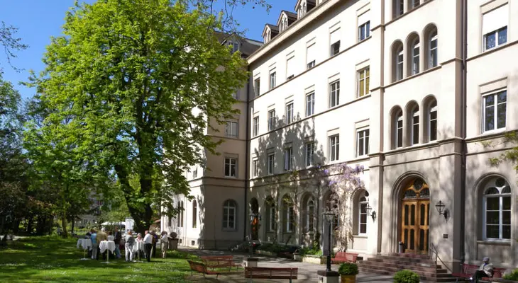 “Imposing and impressive stone mansion, with modern white painted rooms of larger than average size. The only hotel in the heart of Basel with its own park grounds, ensuring privacy.”