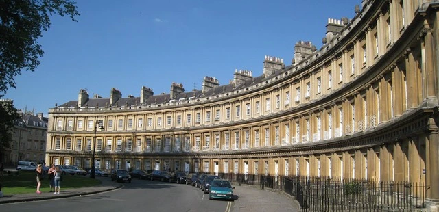 “John Wood designed the masterful Circus, a circle of curving, perfectly proportioned Georgian houses interrupted just three times for intersecting streets.”